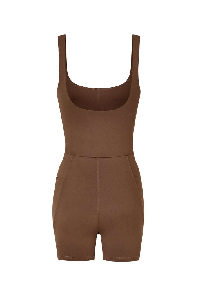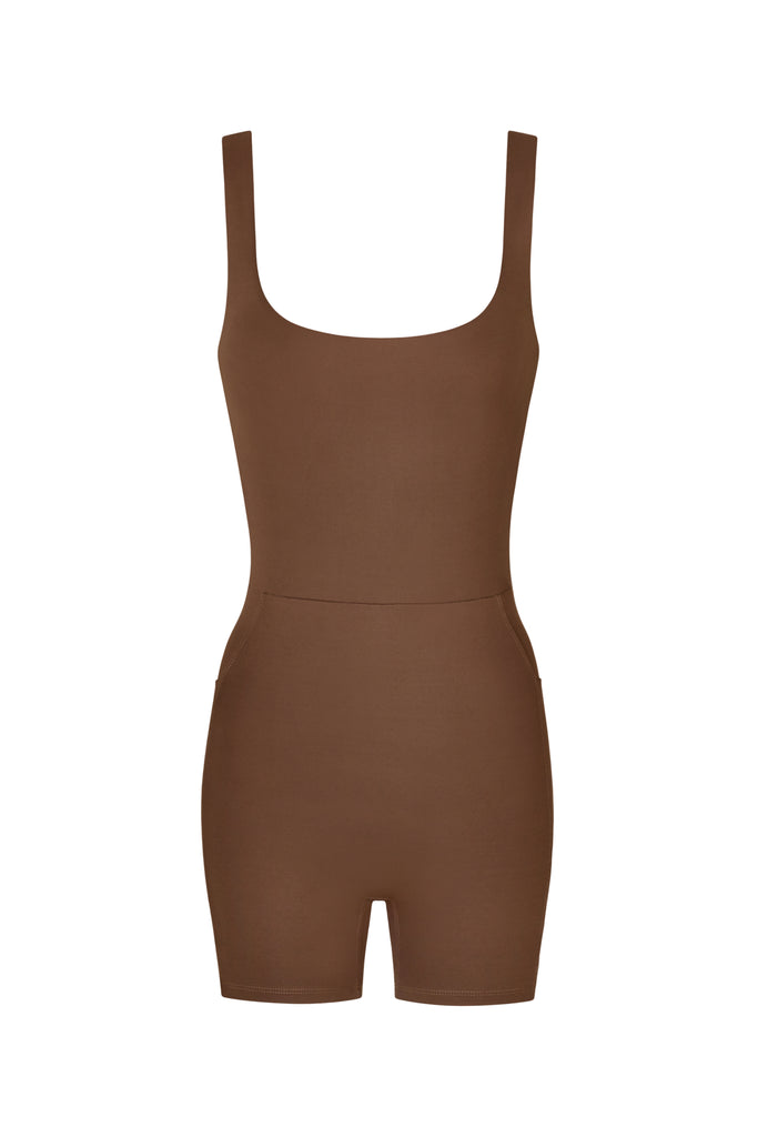 Olivia Square Neck Onesie | Recycled Polyester | Mocha