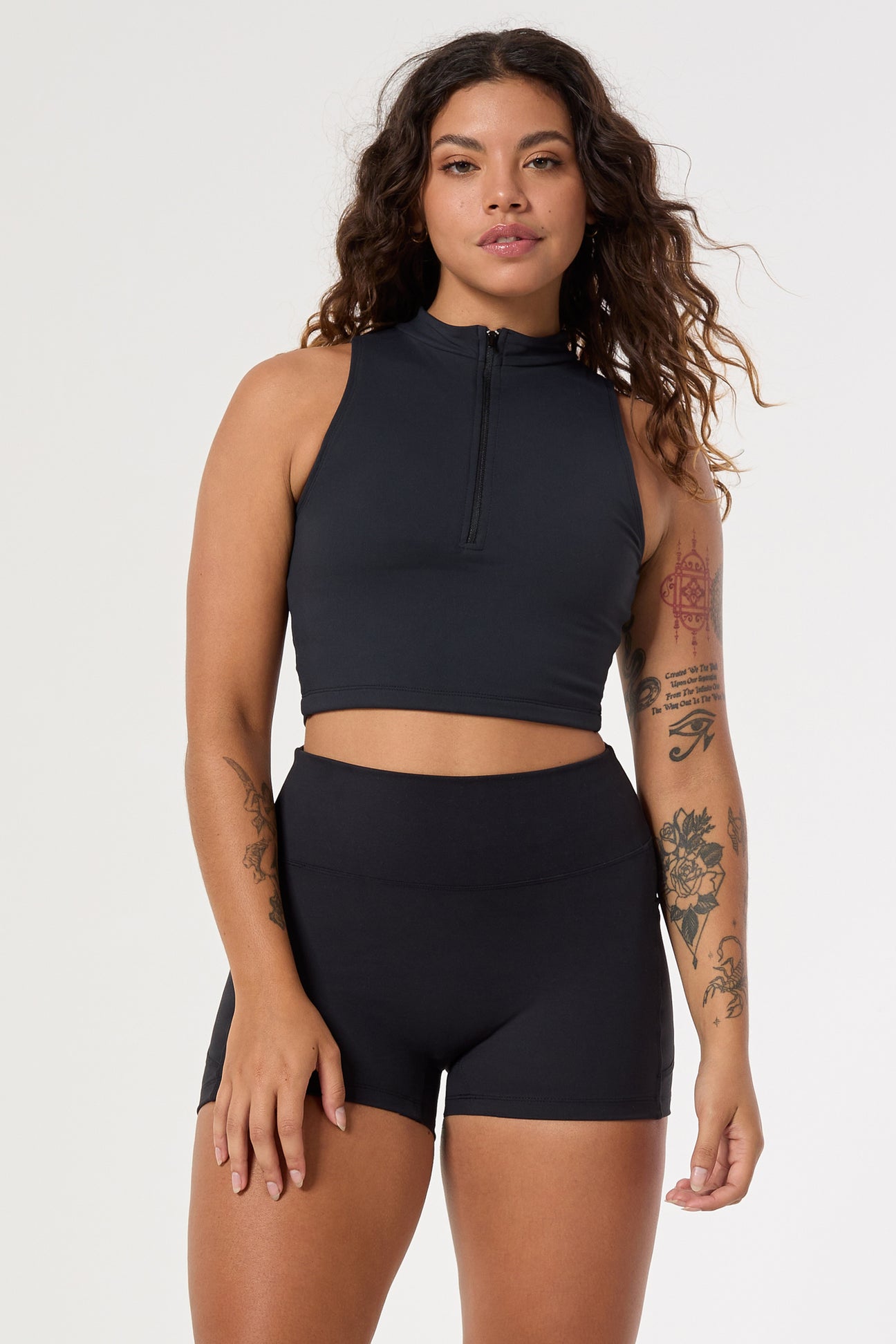 Siv Half Zip Crop Top | Recycled Polyester | Black